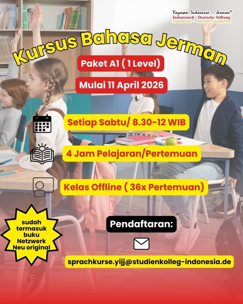 Hi semua! buat yang mau kursus bahasa jerman level A1, kami akan membuka kursus bahasa jerman level A1 loh! yuk segera daftar!